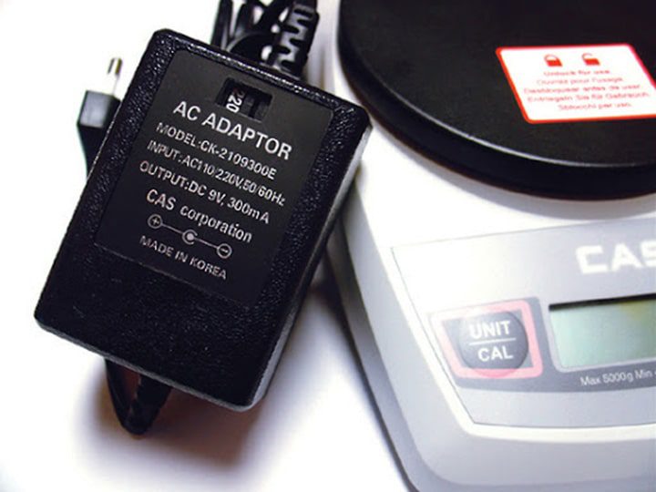 - Cân điện tử hoạt động bằng pin (3 x AA), Adaptor
